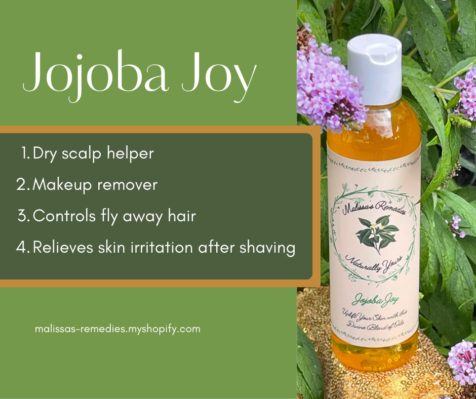 Jojoba Joy contains Jojoba Oil, Vitamin E and Essential Oil of Lavender.